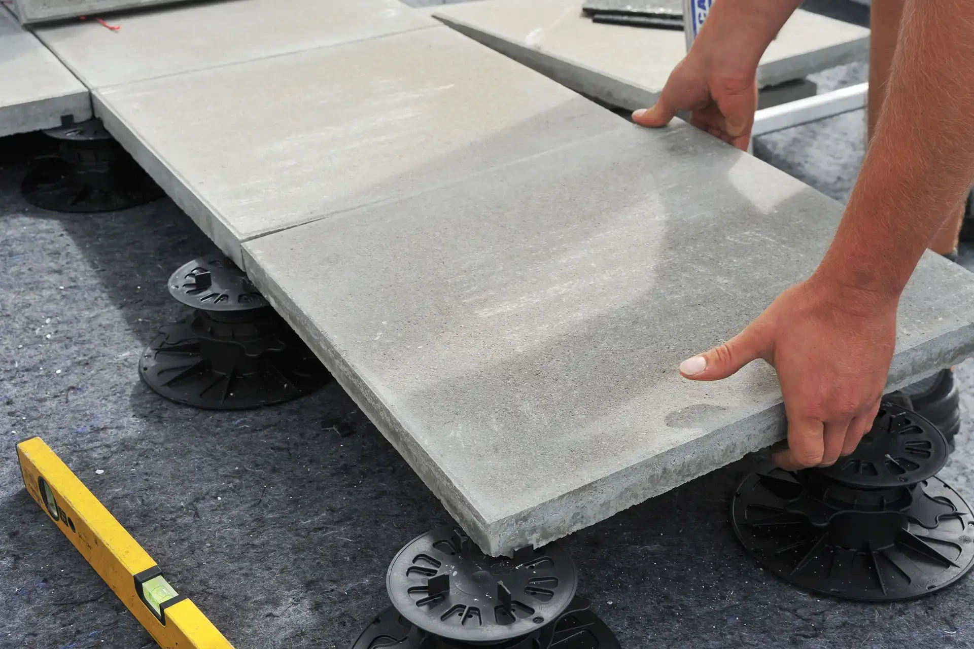 Nous préparons soigneusement la surface puis installons les plots pour vous assurer une planéité parfaite.