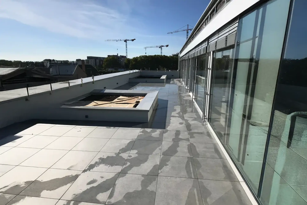 Méthode optimale de rénovation sans démolition préservant votre étanchéité existante pendant qu'elle transforme votre espace extérieur.