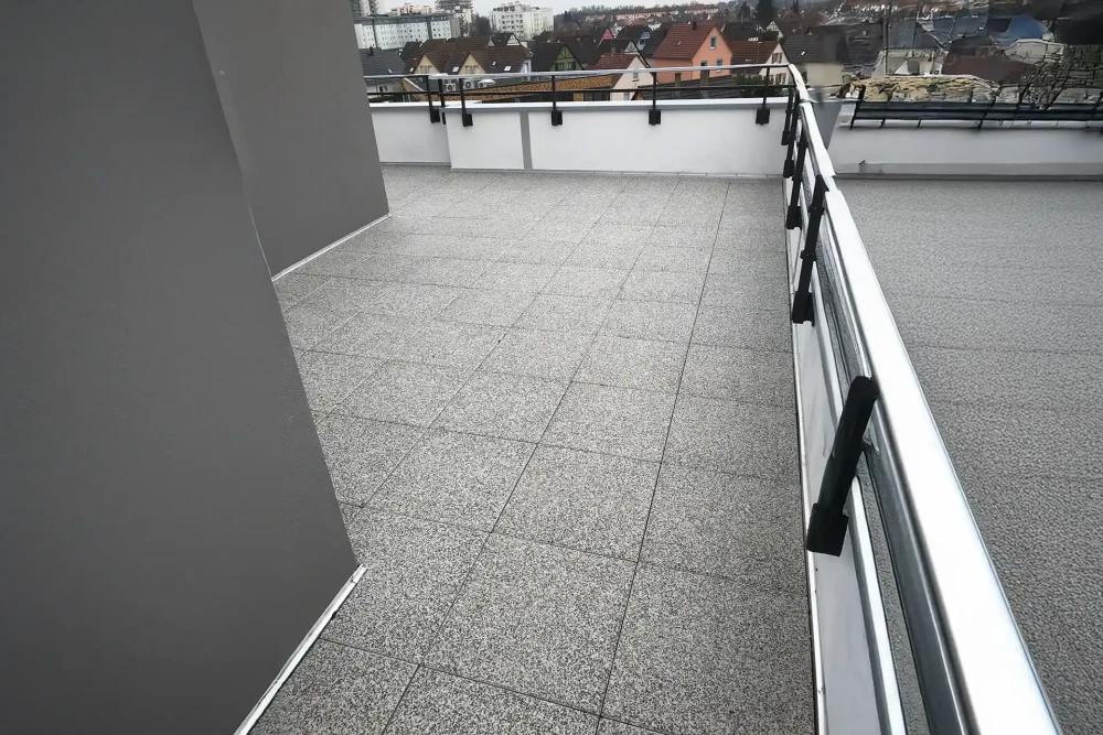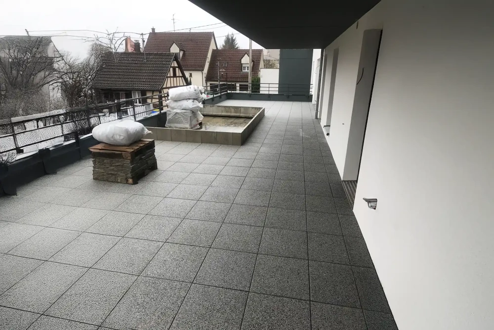 Notre système de dalles sur plots est conçu pour résister efficacement aux conditions climatiques changeantes de notre région. Les matériaux que nous proposons offrent une excellente protection contre le gel, aux rayons UV et aux variations thermiques importantes. La circulation d'air sous vos dalles permet un séchage rapide après les intempéries, ce qui réduit les risques liés aux cycles gel-dégel.